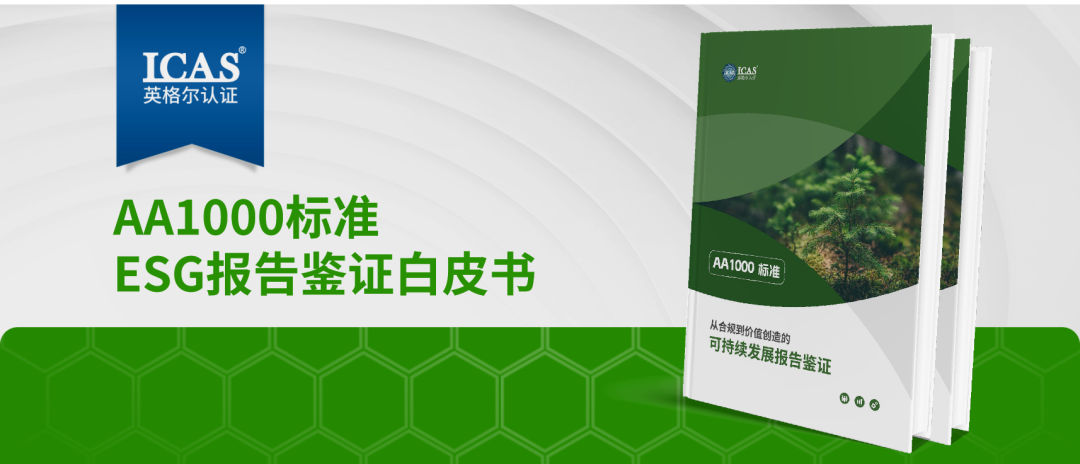AA1000标准体系作为全球首个以“利益相关方参与”为核心的可持续发展鉴证框架,为企业提供了一套完整的方法论支撑,为协助企业更好地理解并实践AA1000标准,ICAS英格尔认证正式发布《ESG报告鉴证指南》白皮书(点击如下图片或在文末免费下载),为企业提供从原则理解到实操落地的系统性指引,助力实现从合规披露到价值创造的跨越。