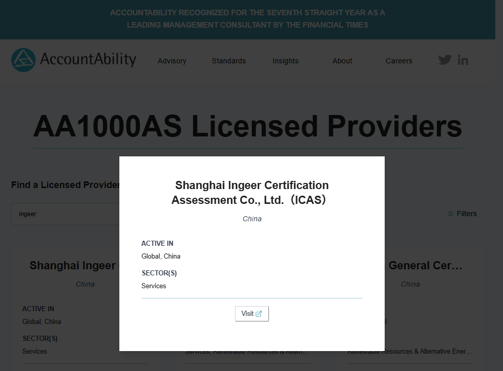 选择具备深度行业知识和标准经验的鉴证伙伴,是企业成功通过AA1000审验、实现价值转化的关键,作为AccountAbility官方授权的审验机构,ICAS英格尔认证在ESG与可持续发展领域展现出多重优势。