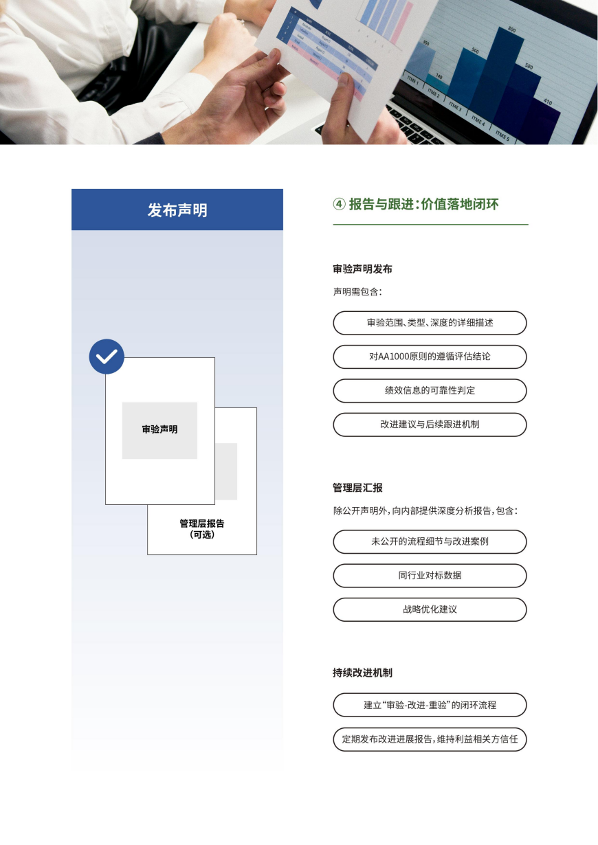 这种分层、分类型的架构,使得企业可在初期以有限资源启动鉴证,也能随披露成熟度提升逐步深化,真正实现因需而鉴、因势而变。