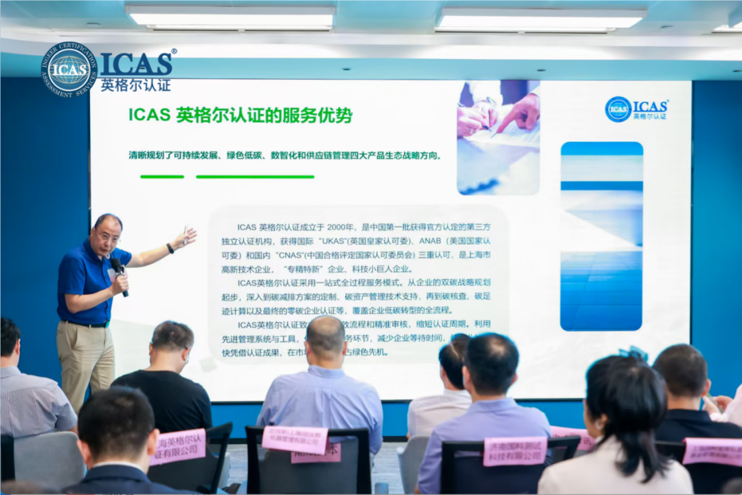 多年来,ICAS英格尔认证持续深耕双碳与可持续发展领域,凭借在产品碳足迹、碳中和、ESG等方面的专业能力,为钢铁、新能源、电子等多行业提供专业的解决方案,拥有大量丰富的案例和资深专业团队。此次活动,展现了ICAS英格尔认证对企业绿色转型需求的深刻洞察,为企业提供高质量低碳转型、主动创效的转型路径。