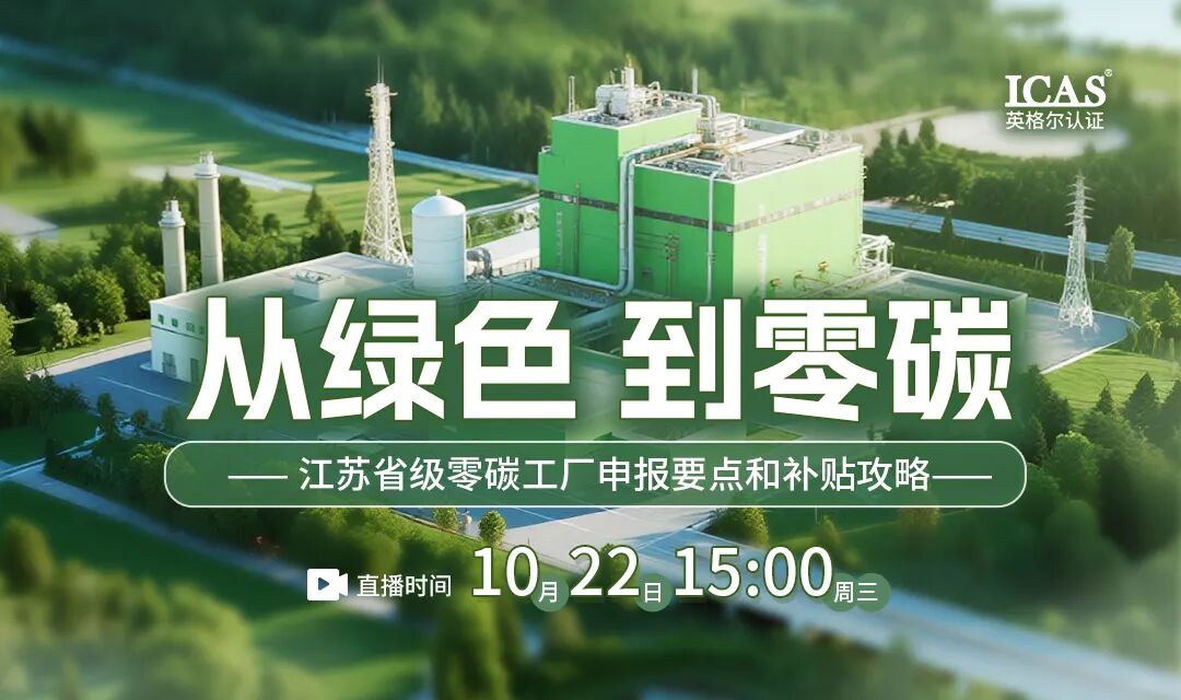 近日,ICAS英格尔认证围绕《从绿色到零碳:江苏省级零碳工厂申报要点和补贴攻略》开展专题直播,从政策拆解、评分解读、案例实战三个维度,和「对标建库-跟踪培育-评估确认-持续提升」的培育全周期,助力企业成功转型。以下为本场直播的核心内容精编,点击下方海报即可获取讲师完整课件。