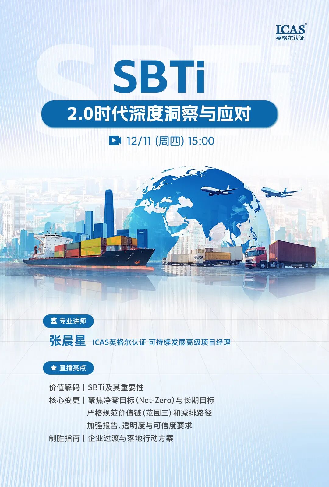 2025年12月11日,ICAS英格尔认证举办《SBTi2.0时代深度洞察与应对》线上专题研讨会,诚邀您观看现场直播,与行业专家共同探讨企业ESG治理与碳中和实践的前沿路径。